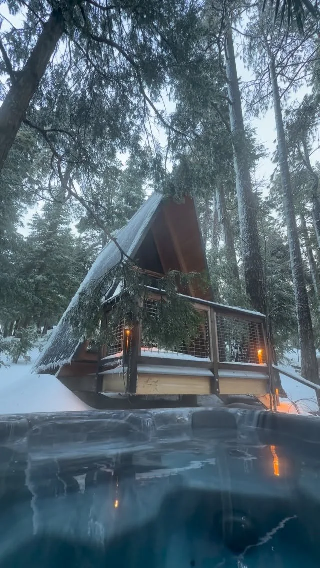 Single-story cabin just a few steps down from level parking area with EV charger. Modern amenities such as fully stocked gourmet kitchen with premium espresso machine and organic spices and oils. Luxuious spa-like bathroom with filtered shower head, Aesop bath products, and hotel style plush white bath towels.